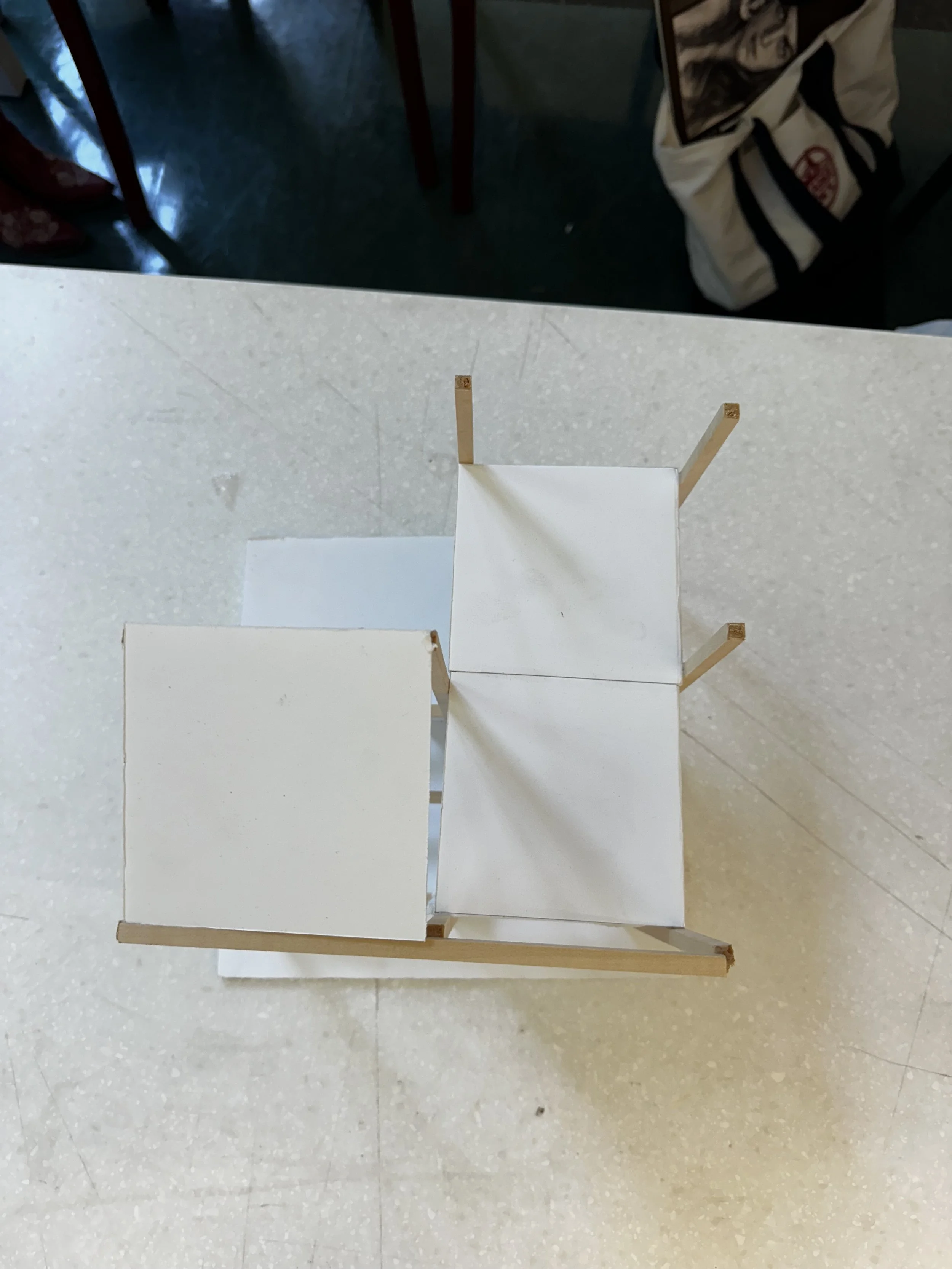Using a certain number of wooden sticks and a certain number of planes in defined sizes, this assignment was to construct an open structure defining space, utilizing certain architectural and aesthetic principles. For my study, I chose to focus on balance, symmetry, and hierarchy.